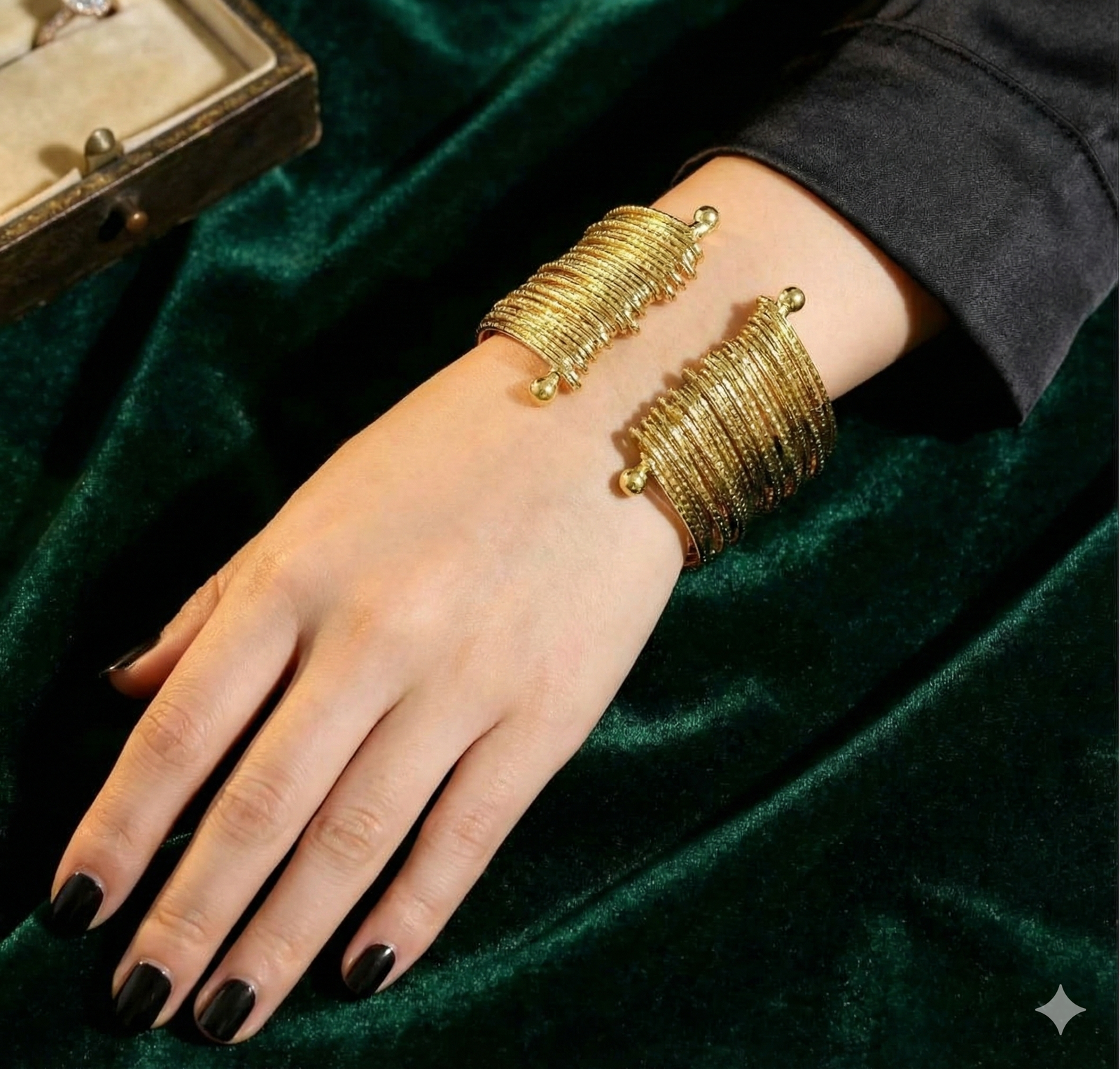 This Gold – Plated Anti Tarnish Stainless Steel multilayer bangle bracelet Anti Tarnish Bracelet for Women Balances Design, Versatility, and craftmanship, making it an ideal addition to any collection.Elegant Design: Exquisitely crafted 18k gold- plated stainless steel .