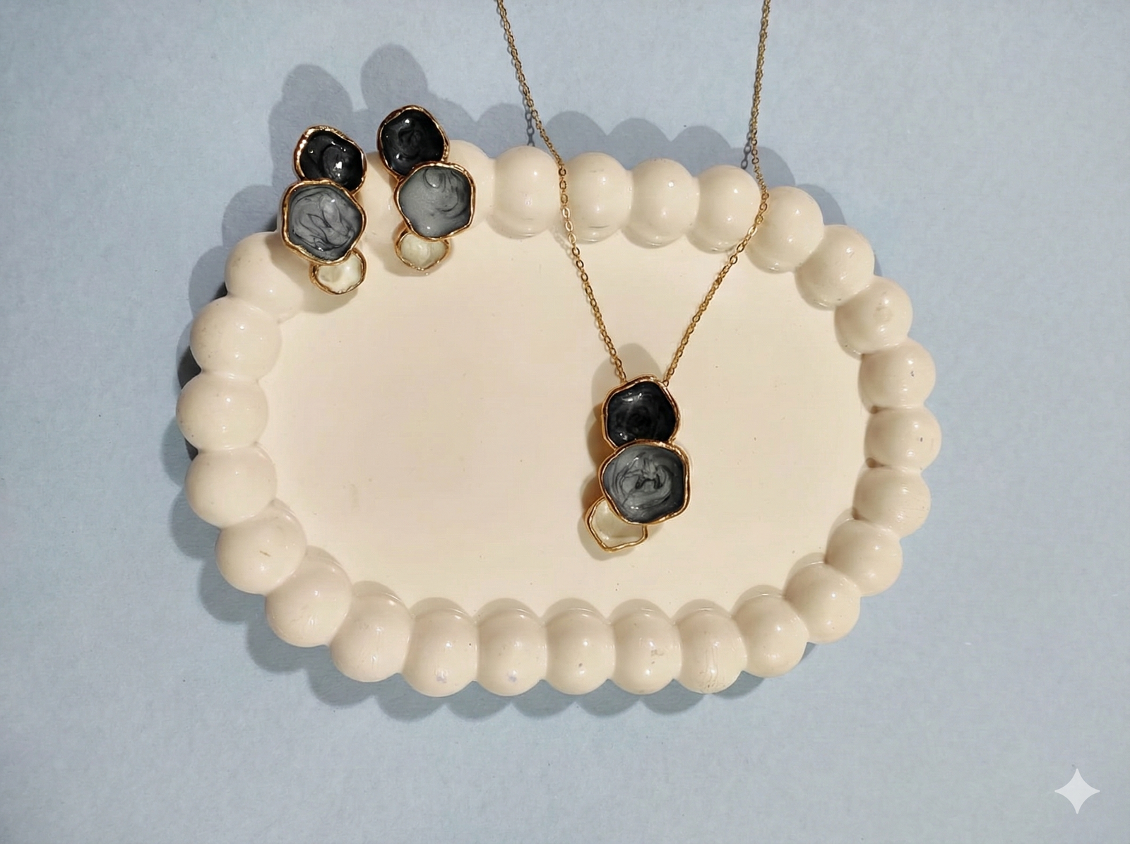 Be the first to review “Anti Tarnish Grey Black and White Pendent Chain With Earrings18k gold plated for Women”