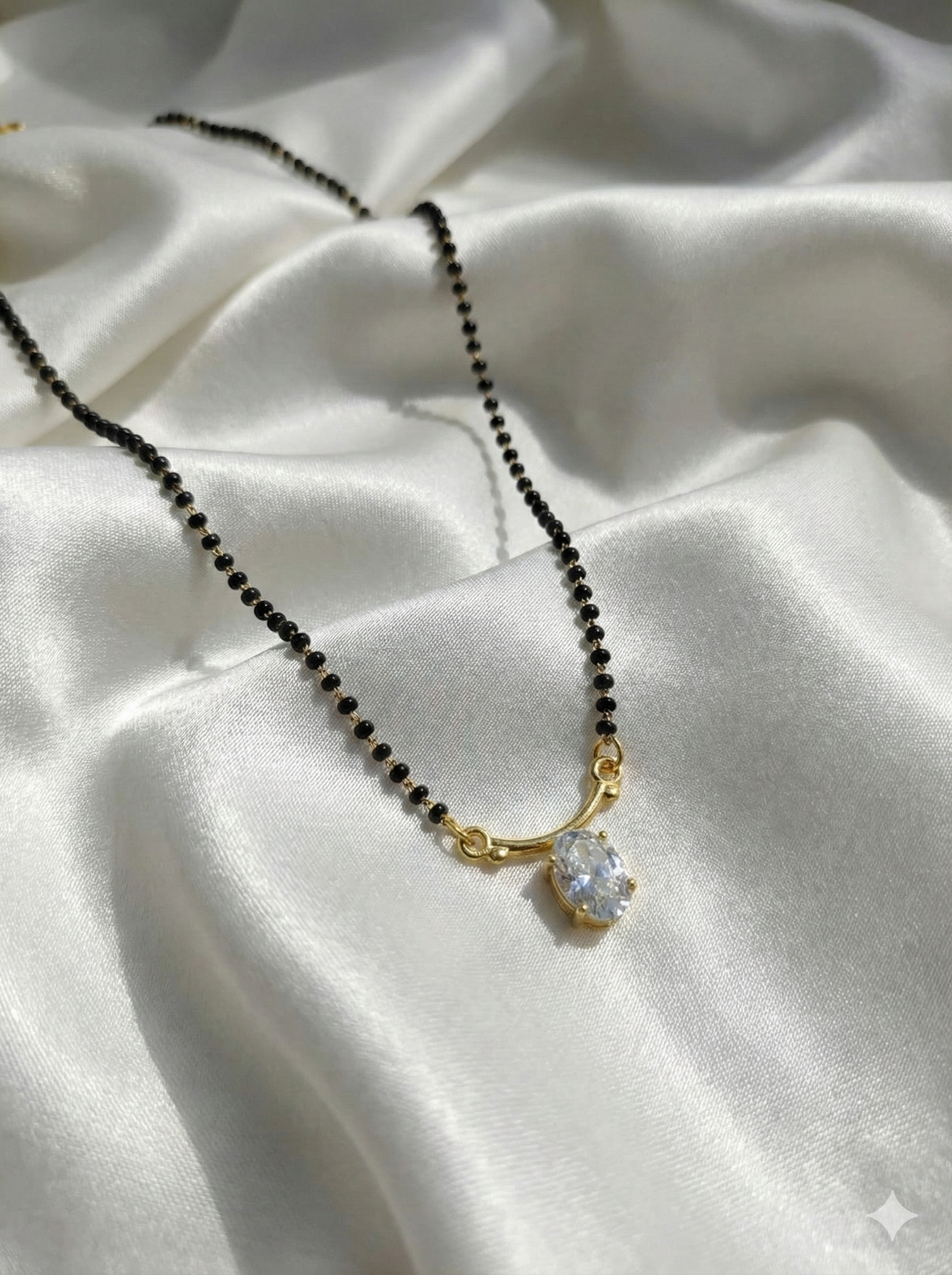 solitaire mangalsutra, minimal mangalsutra, gold plated mangalsutra, daily wear mangalsutra, elegant mangalsutra design, oval stone mangalsutra, classic black bead mangalsutra, lightweight mangalsutra, anti tarnish mangalsutra, minimal pendant mangalsutra, bridal mangalsutra, office wear mangalsutra, modern mangalsutra for women, single stone mangalsutra, latest mangalsutra 2025, premium solitaire mangalsutra