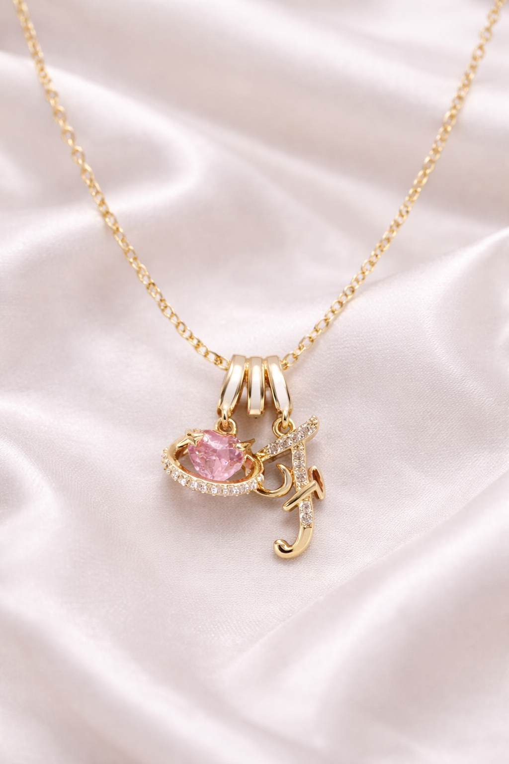 Add a personal touch to your jewellery collection with this elegant Gold Plated Initial Necklace featuring a Pink Heart Crystal. Designed for girls and women who love trendy yet meaningful accessories, this necklace combines a sparkling initial charm with a beautiful heart-shaped pink stone and delicate zircon accents.