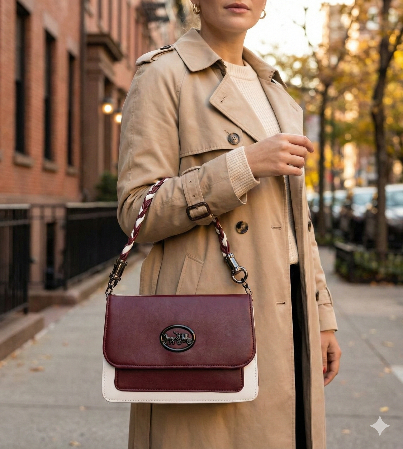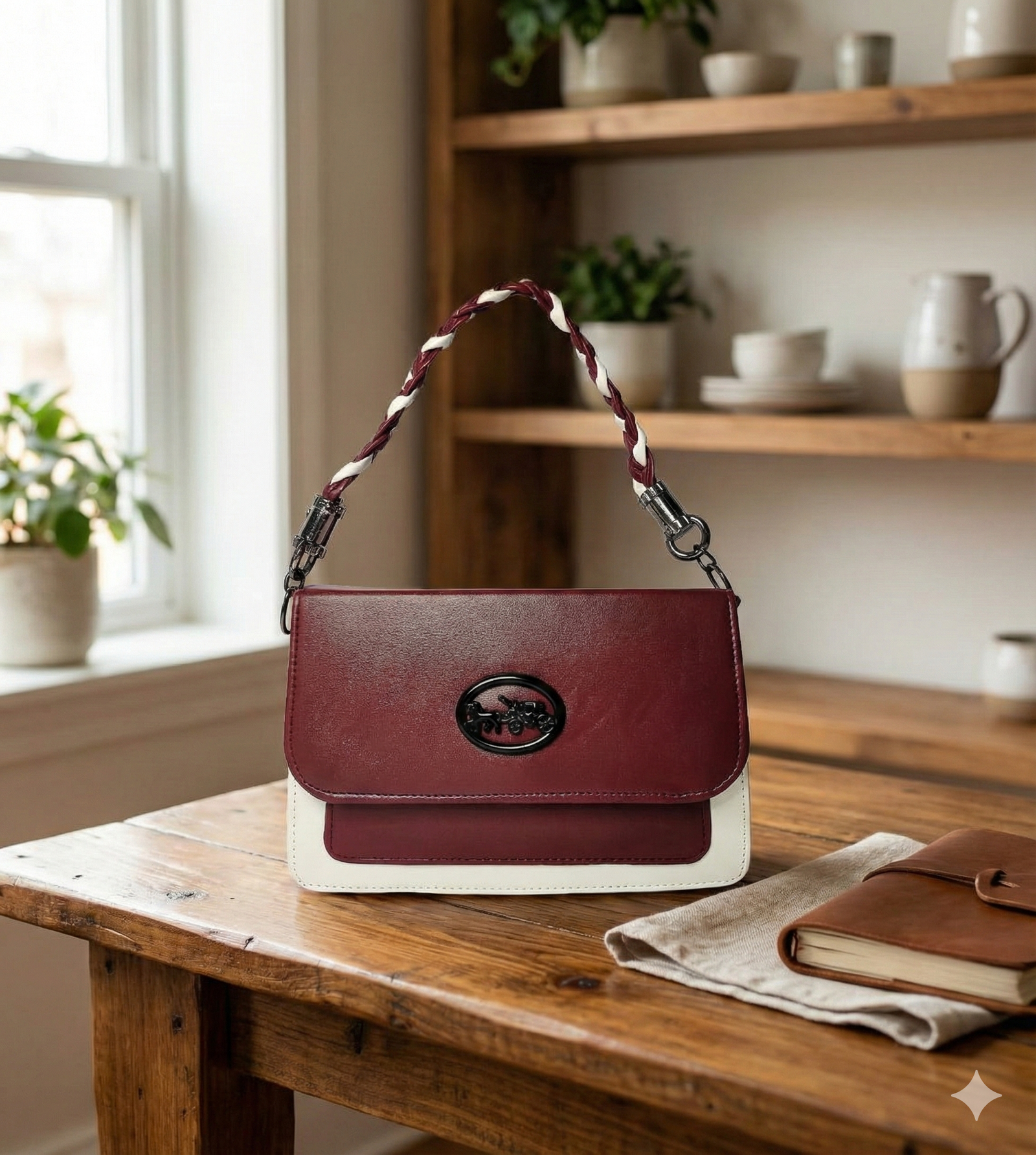 This stylish handbag features a luxurious maroon and white two-tone design crafted from high-quality faux leather. The braided dual-color handle adds a chic and modern touch, making it perfect for both casual and semi-formal outfits. Designed with a structured silhouette, the bag offers ample space for essentials such as a phone, wallet, keys, and small cosmetics. The secure flap closure, durable hardware, and premium stitching ensure long-lasting use. Ideal for daily wear, outings, parties, and gifting, this handbag delivers the perfect blend of elegance and functionality.