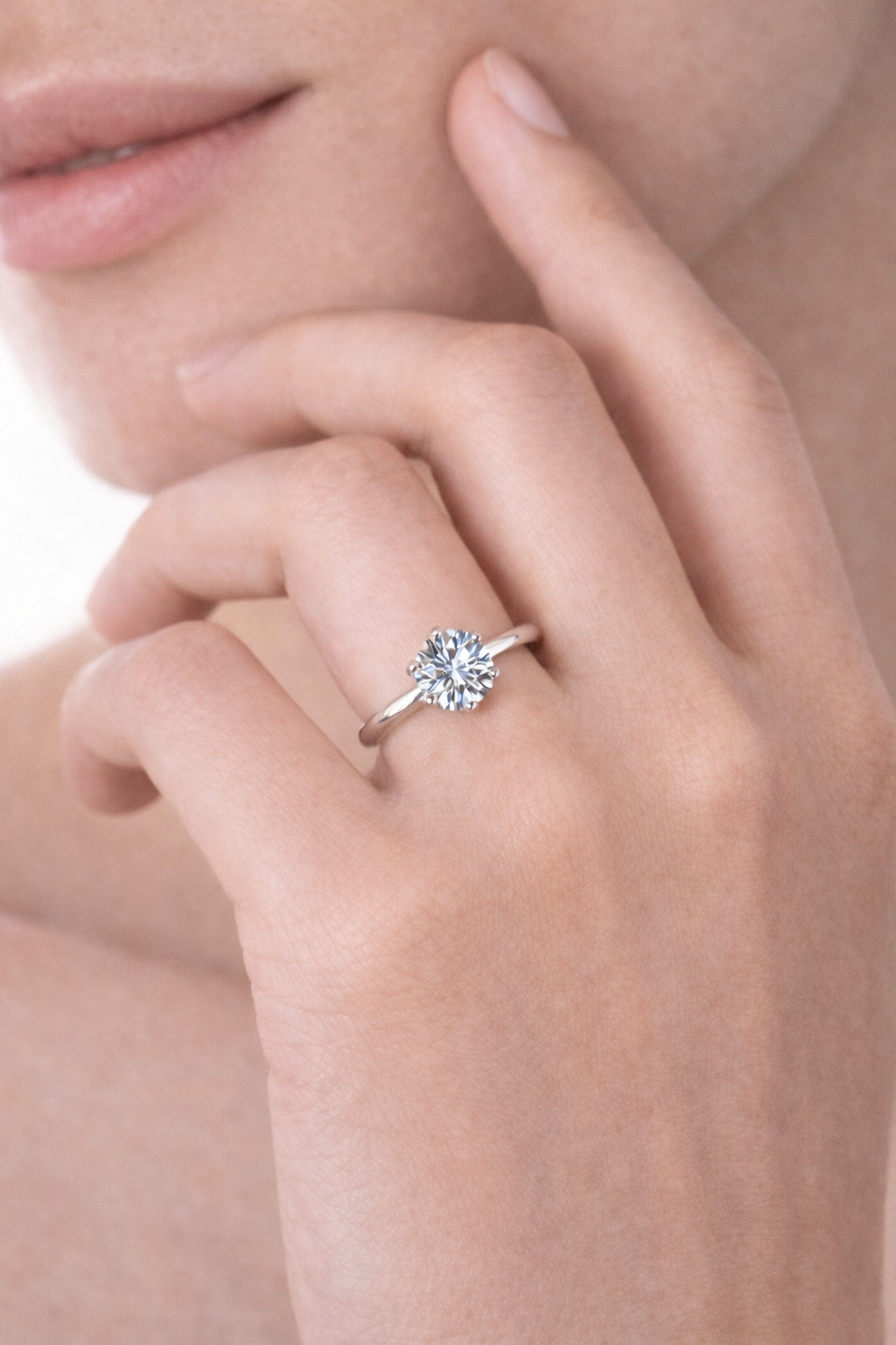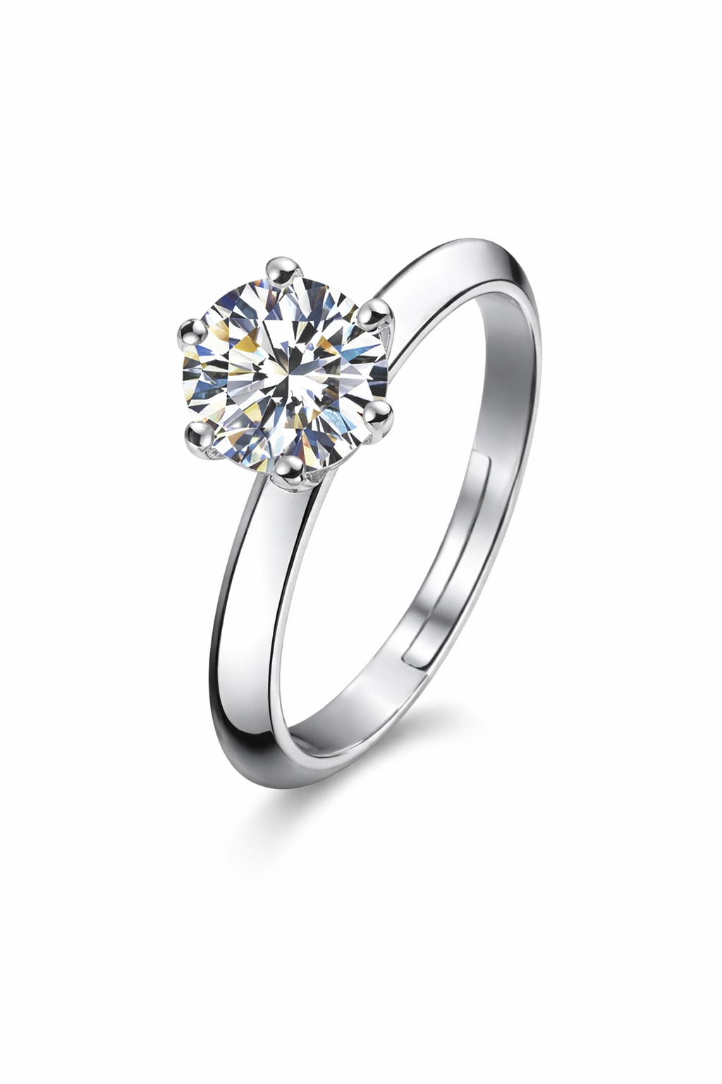 This ring features a brilliant round-cut diamond look stone secured in a classic 6-prong setting, ensuring maximum sparkle from every angle. The smooth silver band provides a premium mirror finish that enhances the overall elegance of the ring.